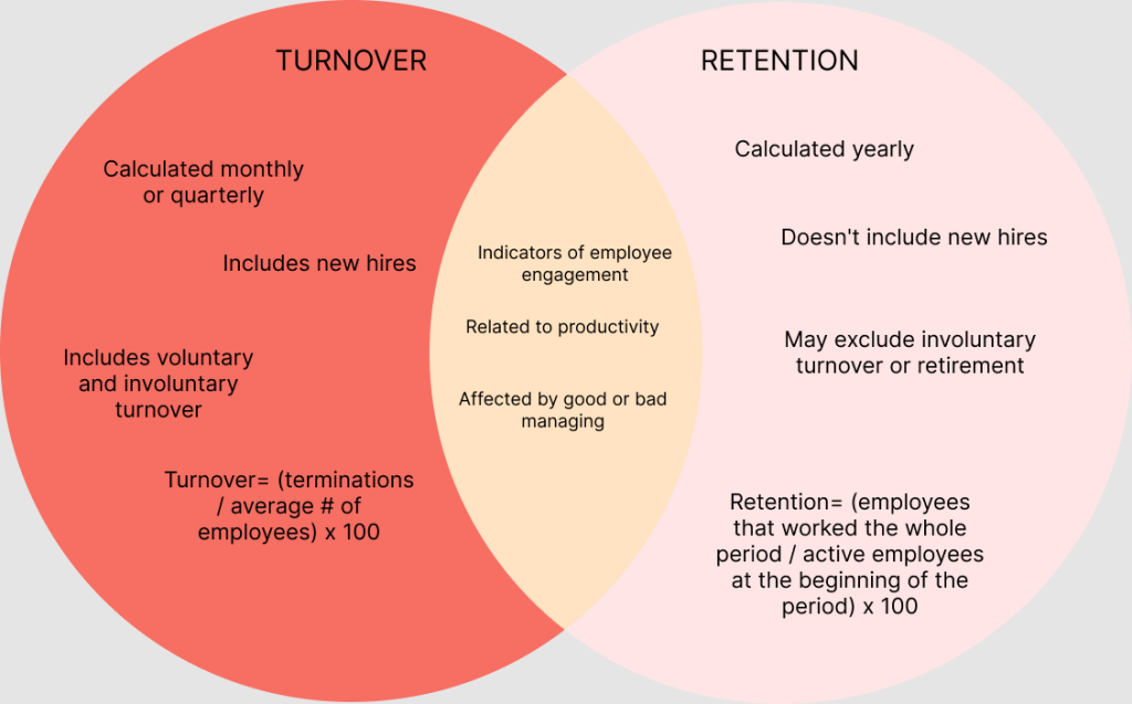 Employee turnover (or staff turnover meaning) refers to the number of employees leaving your company within a certain period. A high turnover rate can mean employees are dissatisfied, while a low turnover rate shows stability.